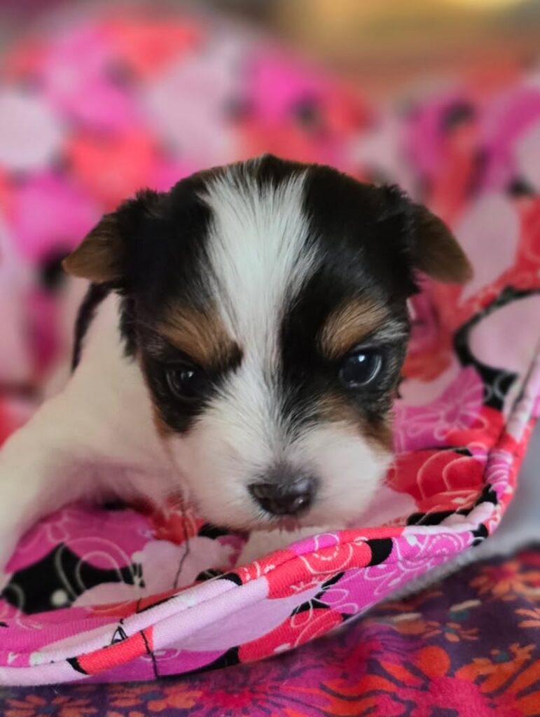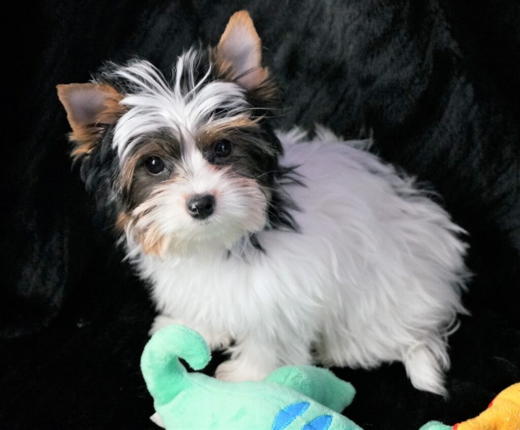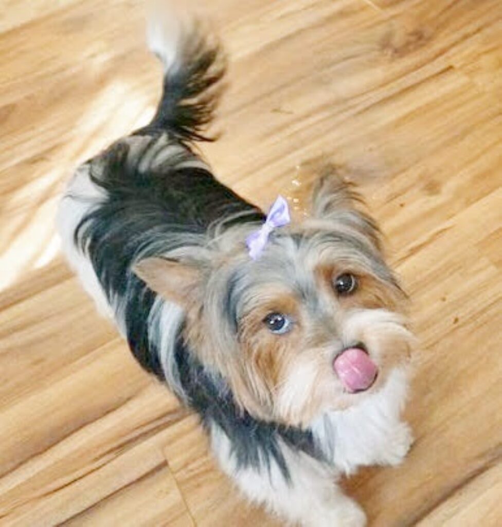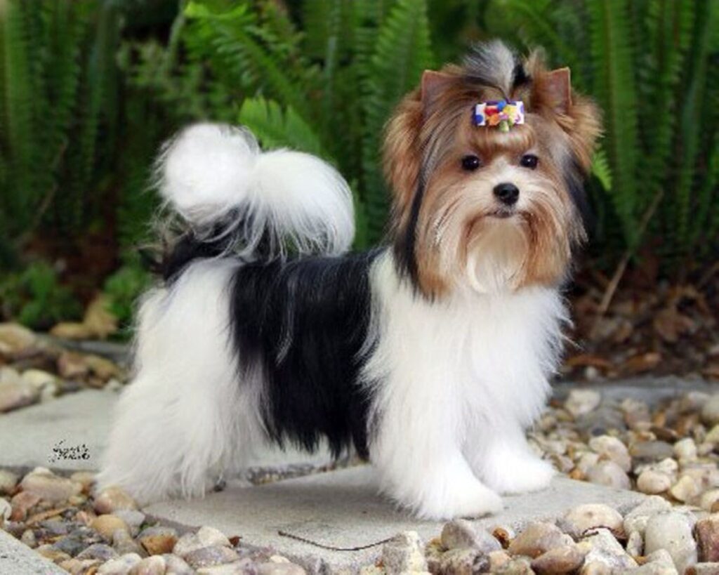 Mr. Biewer continued breeding his colored Biewers to achieve their white bellies and four white legs. In 1989 the Biewer was accepted as it own breed with the ACH German e.V. As we know them today, the Biewer has enchanted us with their elegant coloring and disposition. The head must have three colors; black or blue, white and gold in good symmetry. The belly, chest, legs and the tip of the tail is white. The tail is full. The back is blue or black with white in it. The hair is silky, not curly. The original Biewer Standard that was developed in Germany can be viewed below but the standard adopted by the AKC can be viewed here.